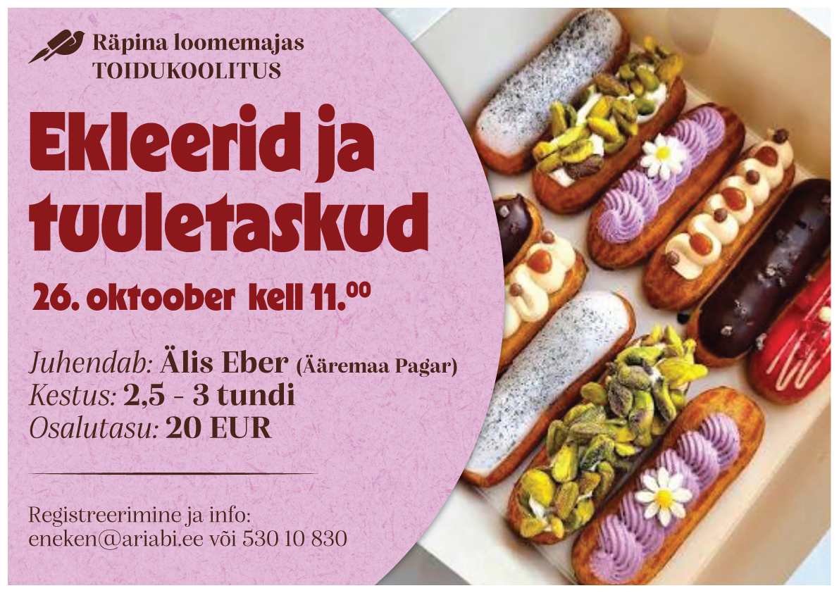 🍰Hooaja esimene pühapäevane kokanduskursus on tulemas!   26. oktoobril kell 11 õpetab Älis valmistama magusaid tuuletaskuid ja ekleere. Täiuslik võimalus maiustada ja uusi oskusi saada.   Pühapäevane kokanduskursus täitus välgukiirusel!…